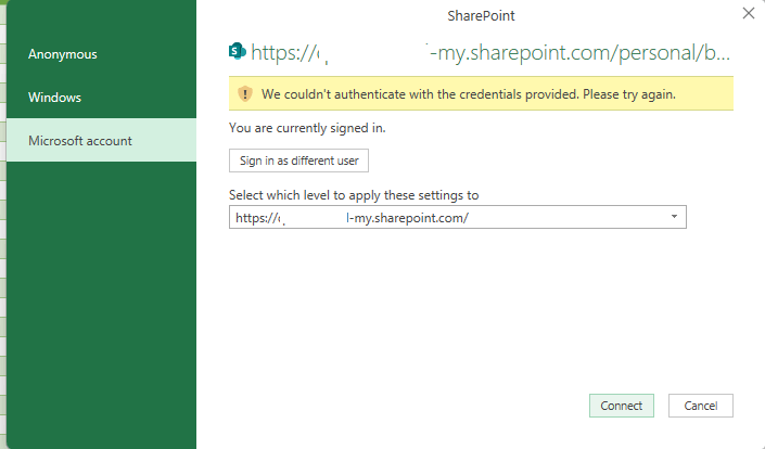 If the situation only happens in a specific workbook, please try to open the workbook in Excel for Web, then try to refresh the connection again. Go to www.office.com, sign into your account, then click the Excel icon in the left sidebar.