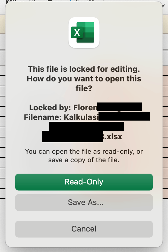 Previously this issue never happen, just happen this few months. If AA open the file first, even I as owner open the same file will be readonly access.