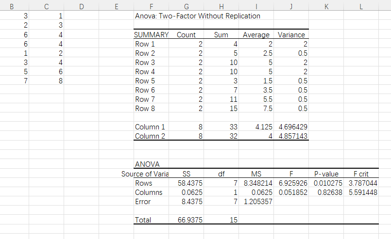 ANOVA with Two-Factor Without Replication - Contains non-numeric data