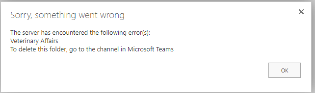 If you create a folder in this channel, could you delete it normally? If you can, try to move this folder to a new folder, and then see if it helps you to delete the new folder.