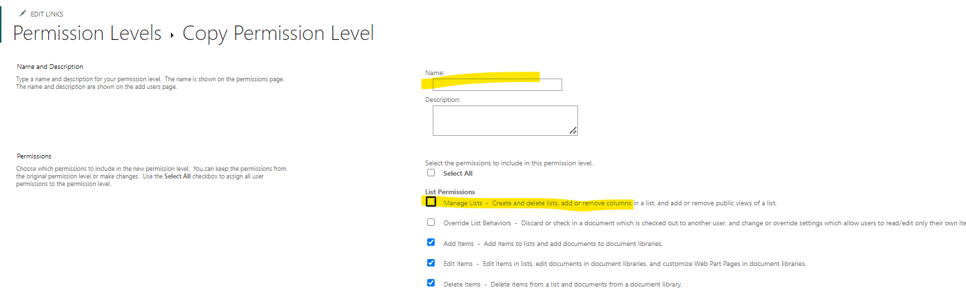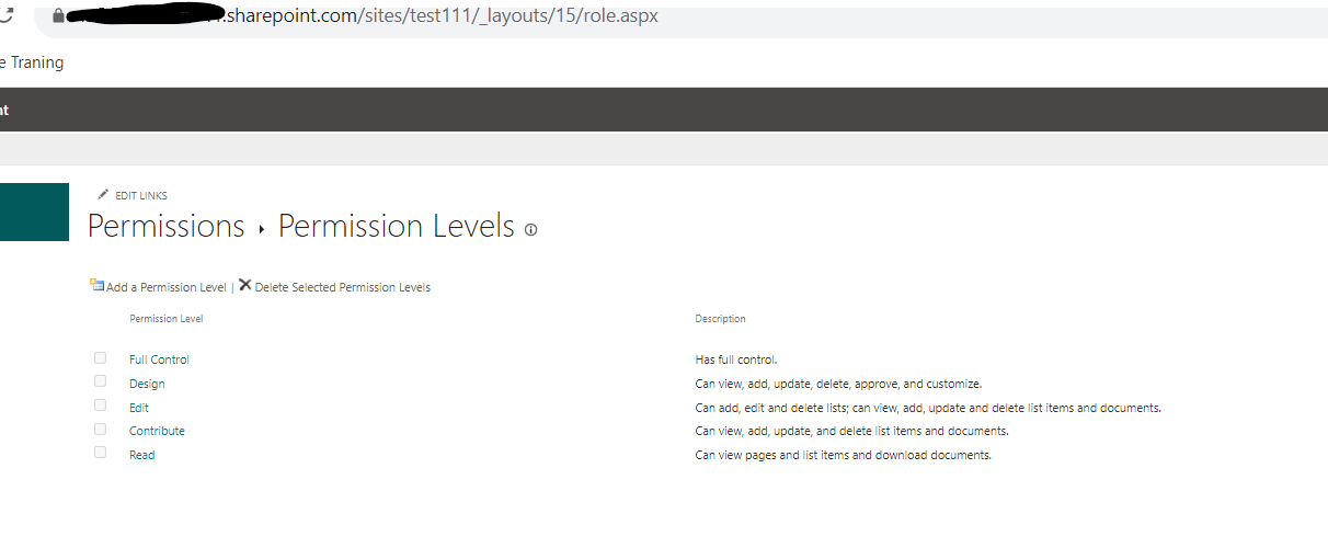 Navigate to site permission levels page by adding "/_layouts/15/role.aspx" to the URL as shown below: