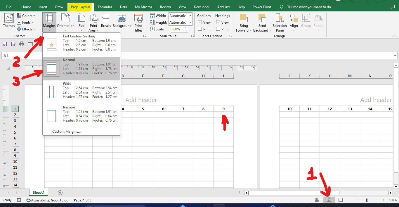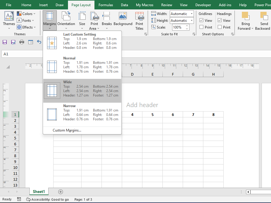 It all depends on the "Margin settings" on your spreadsheet and the "Column Width" you choose when you create the tables for your scenario