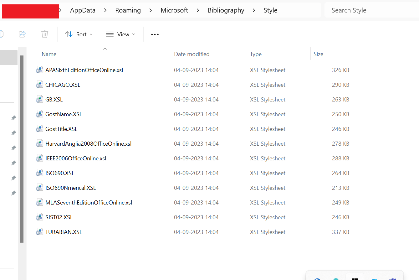 Quit the Word app> Open the File Explorer> Go to the following location C:\Program Files\Microsoft Office\root\Office16\Bibliography\Style > Copy the files> Open the Run app> Enter %appdata%\Microsoft\Bibliography\Style> Click on OK> Now paste the copied files> Restart your PC> Open the Word app and check the outcome.