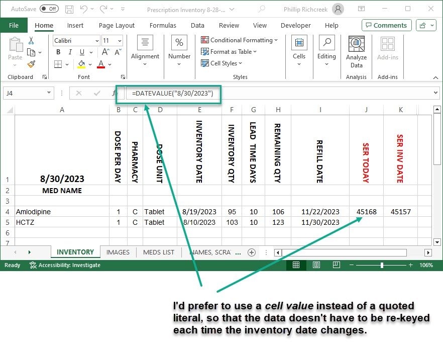 Suppose you have a date in cell A1, and you want to convert it using DATEVALUE. Instead of using a literal date like this: =DATEVALUE("2023-08-29")