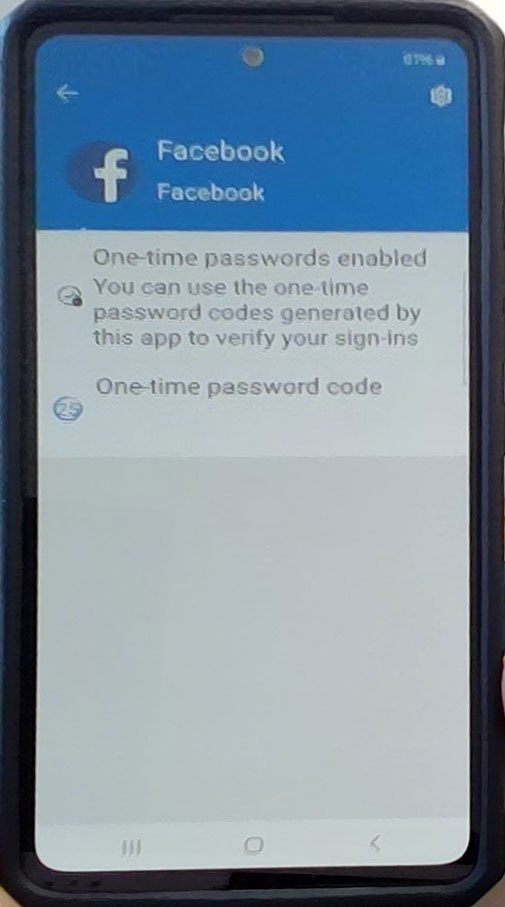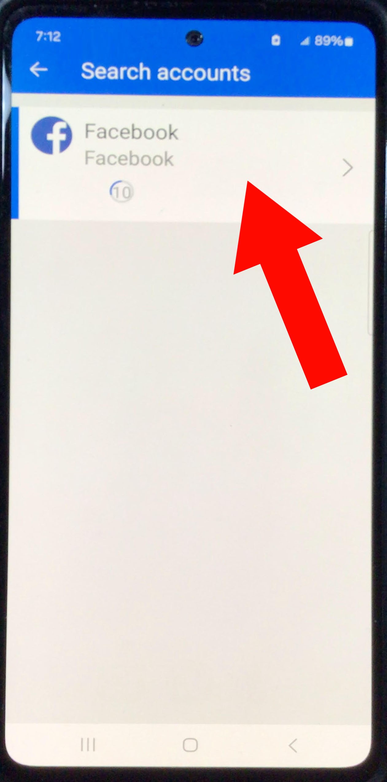 What happens after tapping the Facebook account listed within the Authenticator app?