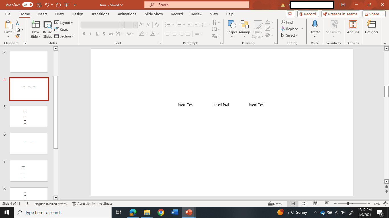 As per your description, firstly, may I know are you using PowerPoint for Windows OS or PowerPoint for Mac OS? If possible, could you please upload screenshot for our reference, so we can understand your exact scenario and provide our suggestion in a productive manner, perhaps some related screenshots will be helpful.