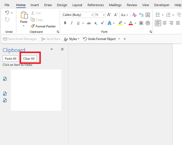 If yes, please check whether the data you copied are showed in Clipboard in Word.