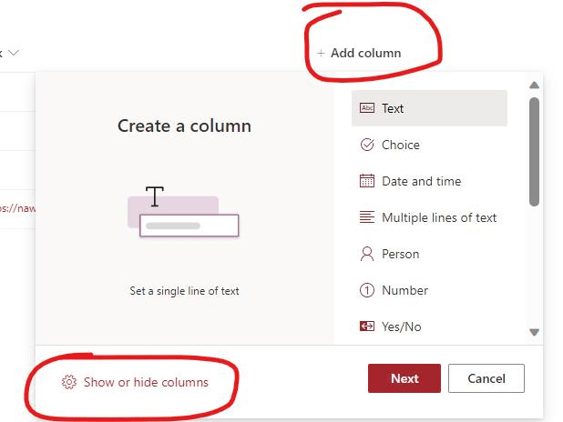 About "hide column", if you don't want users to see it no matter in the list page or when creating new items, you can do it in this method.