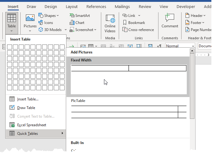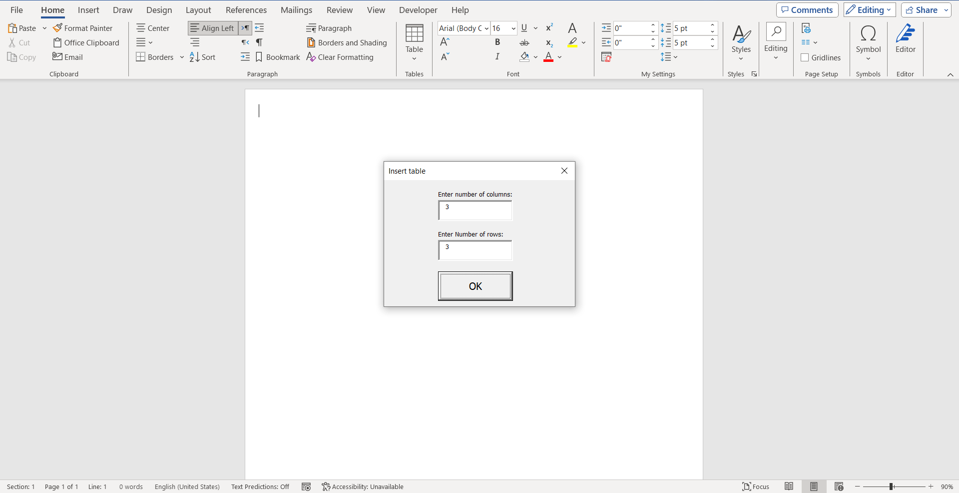Set oTable = ActiveDocument.Tables.Add(Range:=Selection.Range, _