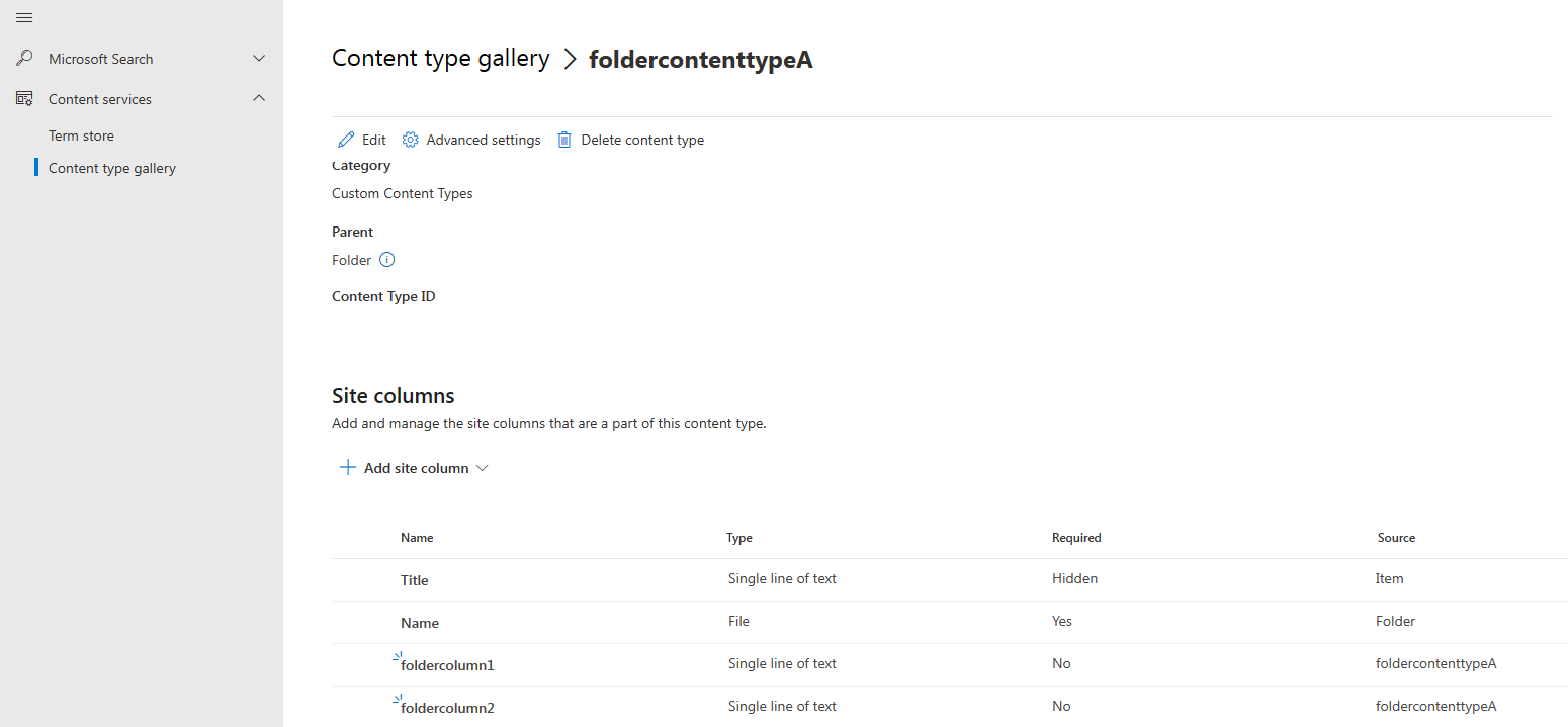 In FolderView, folders appear and you cna see foldercolumn1 and foldercolumn2 appear and these column values are limited to foldercontenttypeA.