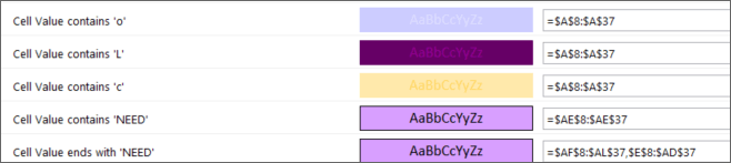 I've tried putting a space after the word Need in the conditional formatting and that doesn't work and it's not sustainable.