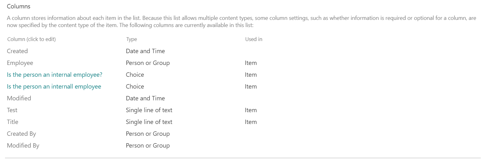 Step 2: Scroll down to columns in the List Settings and click on the column name:
