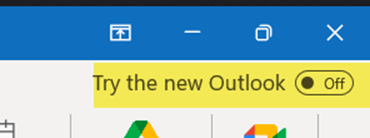If you do not see the toggle to turn off the new Outlook, you can cause it to be displayed by