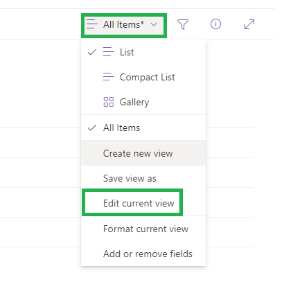 1.In your SharePoint List, click All Items and choose Edit current view.