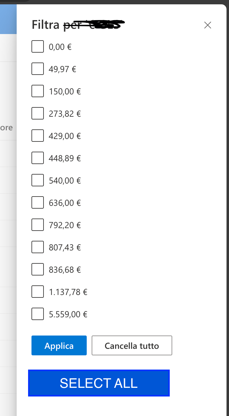 As far as I know, I'm sorry and I'm afraid there is no built-in feature in SharePoint list to create a "Select all" button as you described. Sorry for the inconvenience.