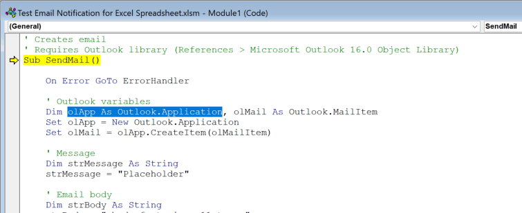 Dim **olApp As Outlook.Application**, olMail As Outlook.MailItem