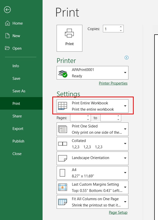 How to set Print Entire Workbook as default? Currently the default setting is 'Print Active Sheets'.