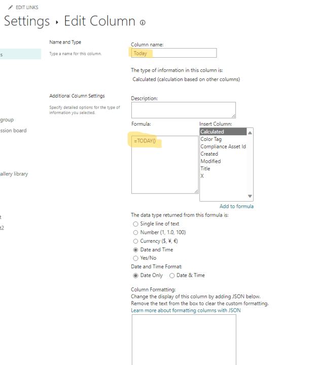 Create another column (calculated column and use TODAY () formula) in the SharePoint online list called Today and set it as a calculated column with formula as Today. This column can be hidden in views (if you want to hide).