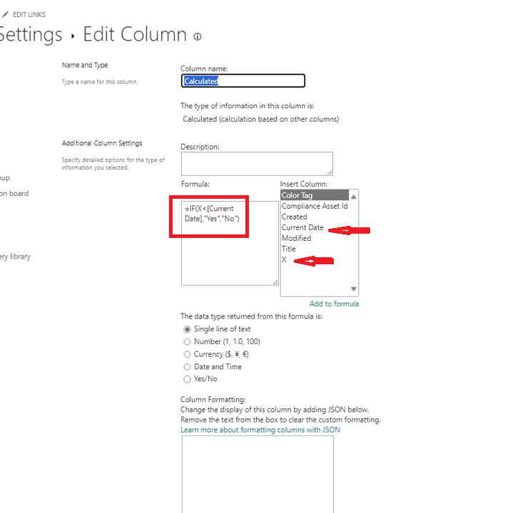 To create a column that returns "Yes" when the date in the column "X" is earlier than today's date without causing syntax errors, you can use the following workaround: