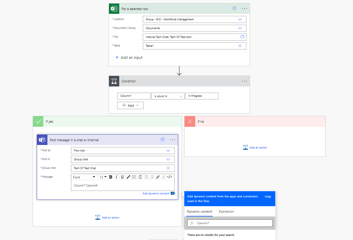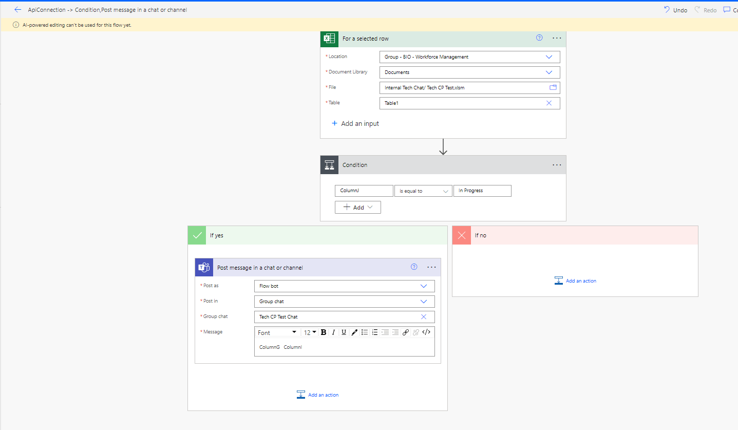 That same idea should work when ever I update any cell in column J to "In Progress." Then the data in that specific row in the specific cells should be copy pasted in to a Teams Channel.