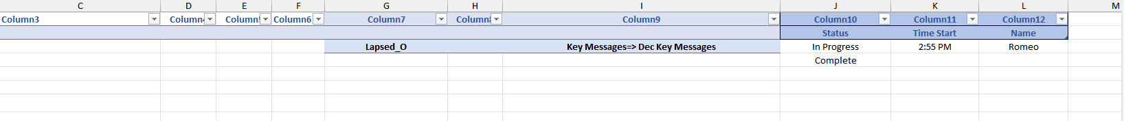 Starting at the top and working my way down, I update a cell in the Status column to be "In Progress." When I do that, I need the data in that corresponding row in cells G and I to be automatically copied and pasted in to a Teams chat. So If I change the Cell J2 to "in progress" then the data in Cell G2 and I2 will be automatically copied and pasted in to a specific Teams channel.