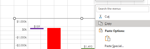 then i go to PowerPoint to paste the chart by going to Paste, Paste Special and i get this -
