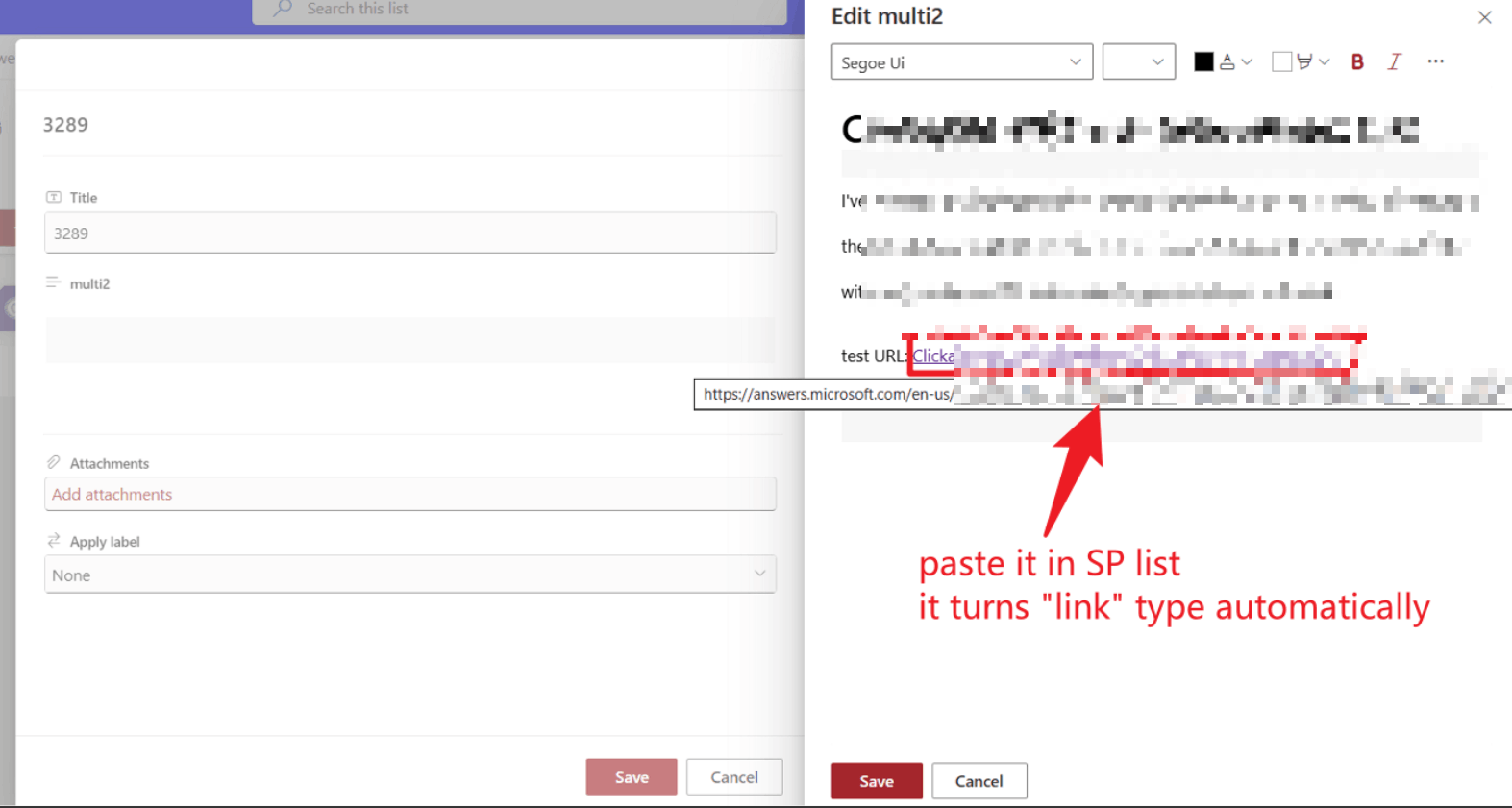 However, if you are using other column types, like "multi lines text", SharePoint might not automatically detect "links" always. When you directly enter the URL, it will be detected as "plain text". In this situation, it is not clickable. To create clickable URL, it must be entered as "link".
