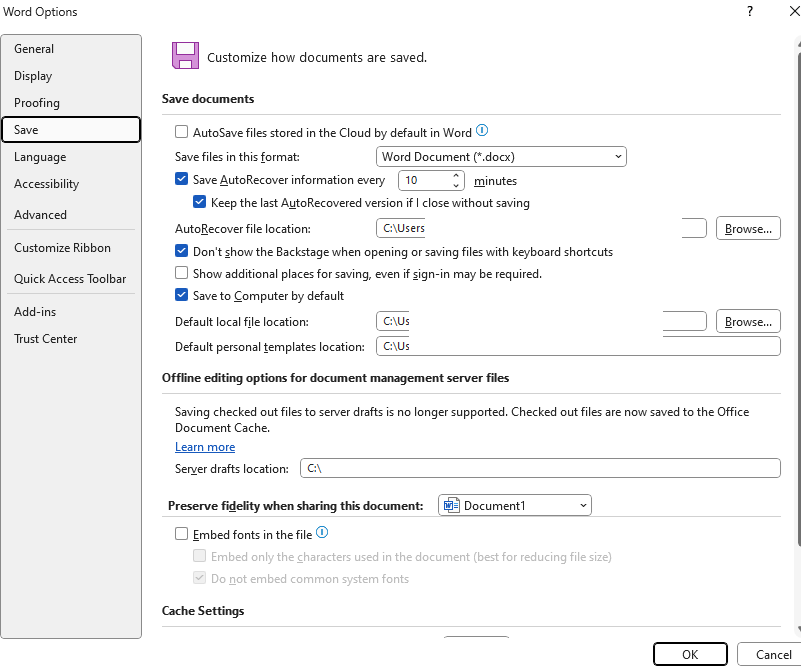 Any documents that are currently saved to the cloud or synchronized via the local OneDrive folder must be moved out of that location.