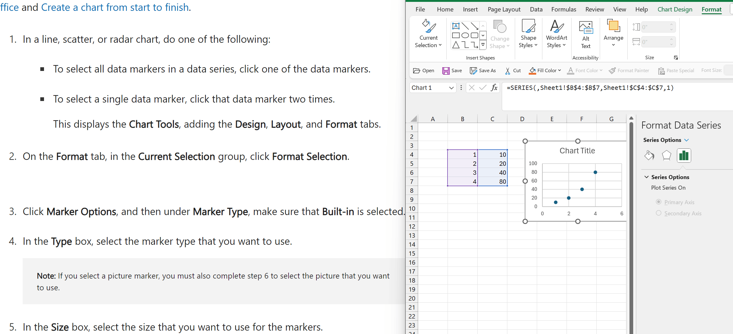 Follow the steps in this article: https://support.microsoft.com/en-au/topic/change-data-markers-in-a-line-scatter-or-radar-chart-8e91c157-1c9c-4852-9657-1e2e1317f415