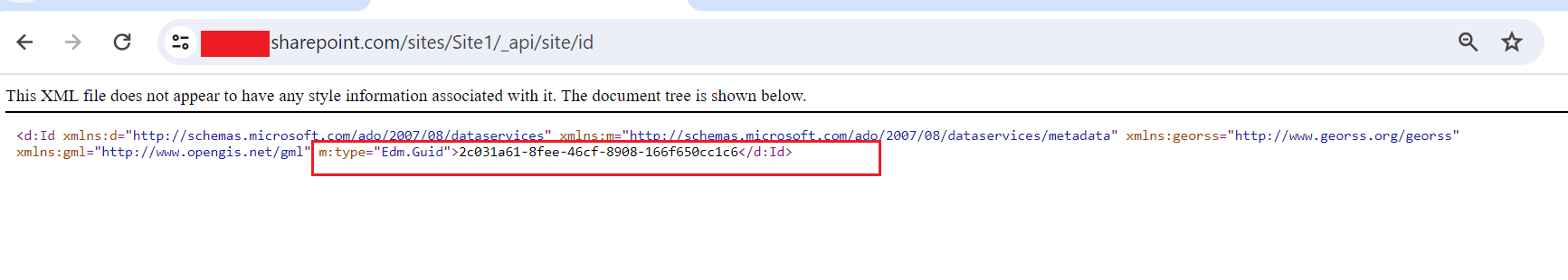 https://companyname.sharepoint.com/sites/sitename/_api/site/id