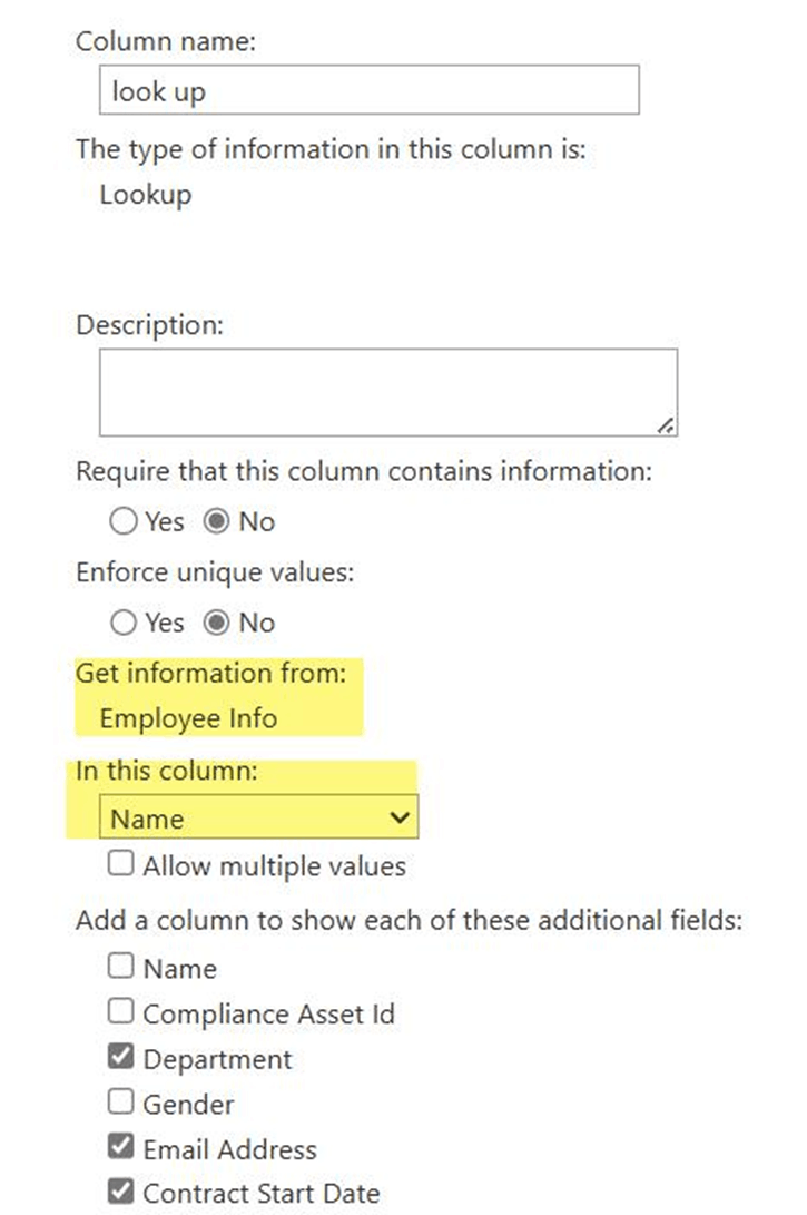 First check the lookup column supported values: