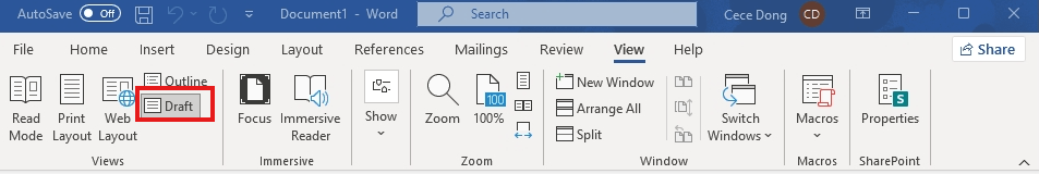 For me "Normal" is without all those dotted lines or pushing the text over to the side of the window as the "Draft" view does. I've never used "draft" view and will never use it as it does not look like what I am typing. When I create a document I need it to look like the "Normal" finished version of whatever it is I'm creating, so I know what needs to be done to improve it!