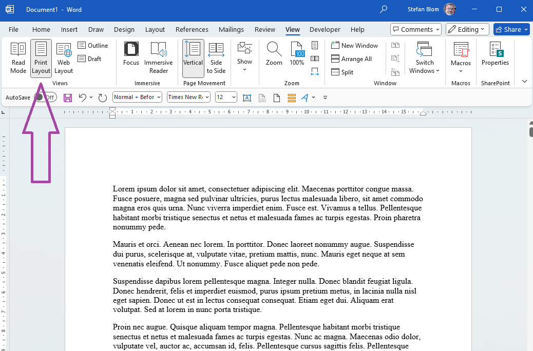 Normal for me is the view that I get when selecting what you now call "Read Mode" but which has absolutely no editing capability and takes away all the tabs you utilize while editing your document! What kind of insane thing is this that MS is doing to Word?