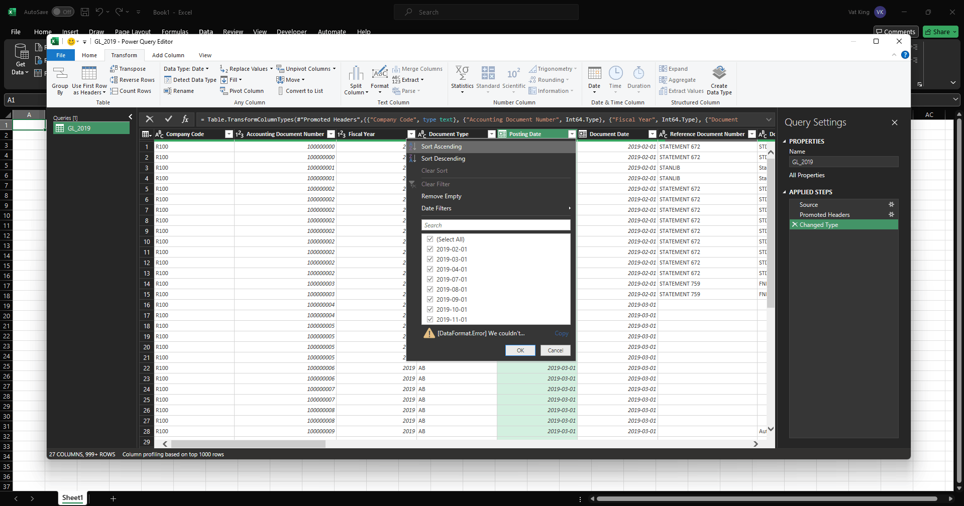 I am trying to import some data into Excel from a text file, however I get the following error in regards to the Date column: