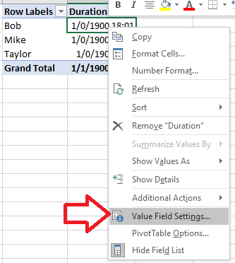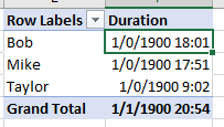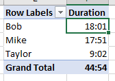 That's it. Now we can change the number format of the Pivot field (not the cell format!) to a duration and the PT is ready to go for real life.