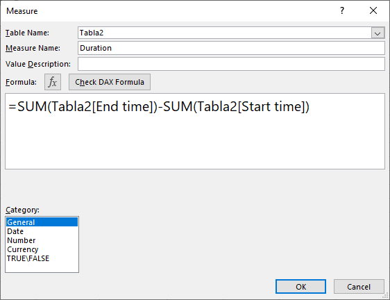 Now we can create a PT from the Data Model and we can add a measure to calculate the duration
