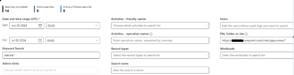 Please enter Dakota Star (*) in the keyword and try whether it works or not. however, if that doesn't work you can also try entering Dakota Star (*) in the folder or site. Leave the keyword blank. Then from there, it will show a list of results regarding to this keyword. Then you can you can download the results and filter the results to show this site when only.