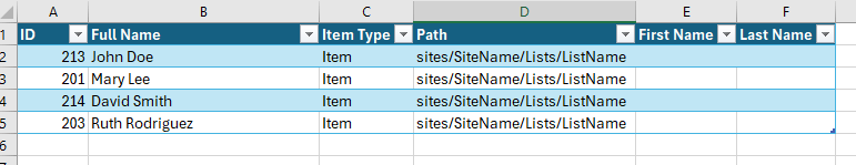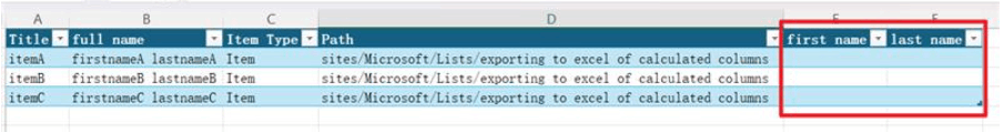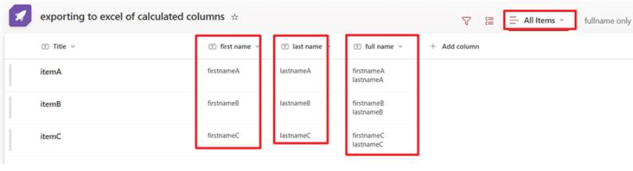 We created "first name" "last name" and "full name"(calculated column) in the list.