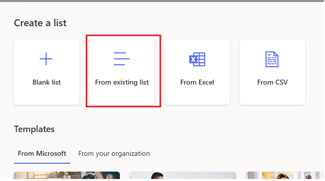 If you are using SharePoint online, generally, you can select + NEW> List > select From existing list,thenyou canselect the existing list as a template to create a new list on your site: