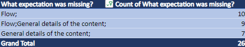 Like the total Count of What expectation was missing by its own, not combined as it shows in the second row, but more like in the first row of the Image 1. Something like: