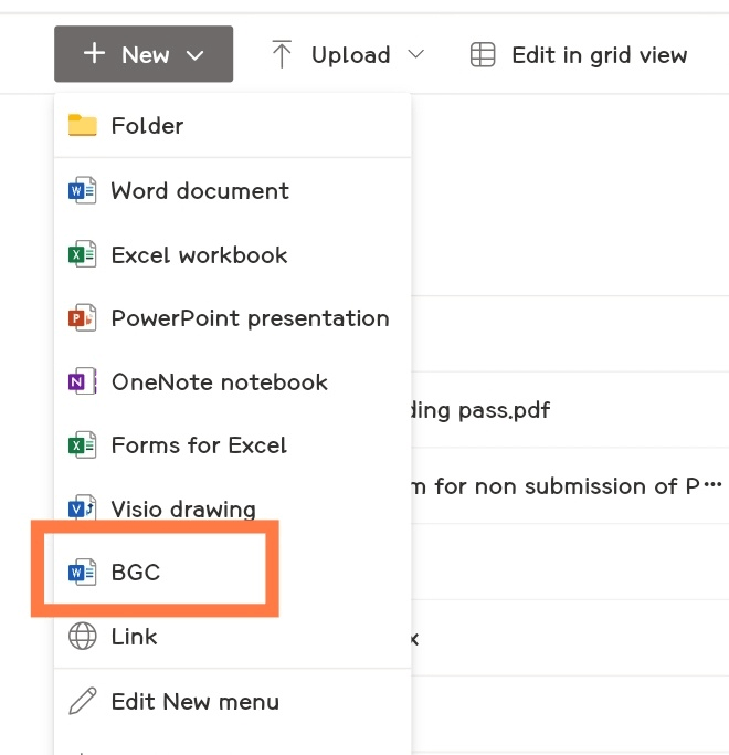 So, when user create a new file by clicking on + New and clicking on the uploaded template, the new Office file will be created from the uploaded template.