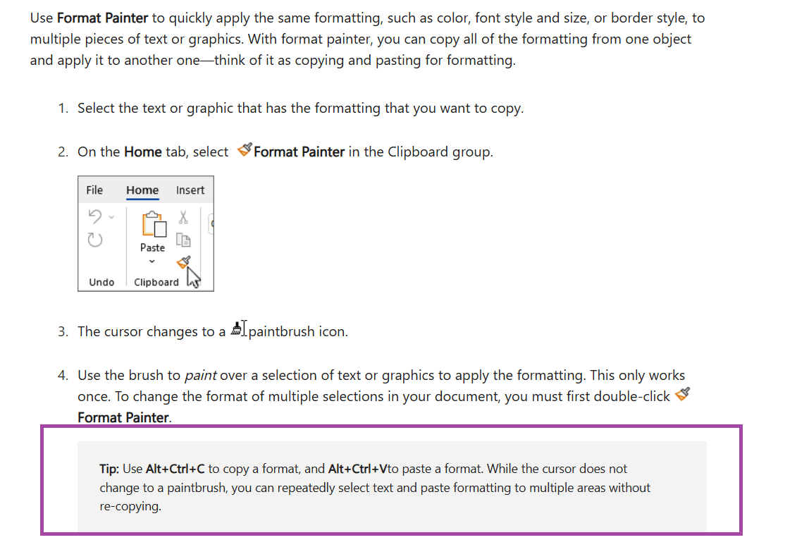 Microsoft's support article about copying & pasting formats now lists the new shortcuts. See https://support.microsoft.com/en-us/office/use-the-format-painter-4bb415a9-d4e4-42b7-b579-170adc594e40.
