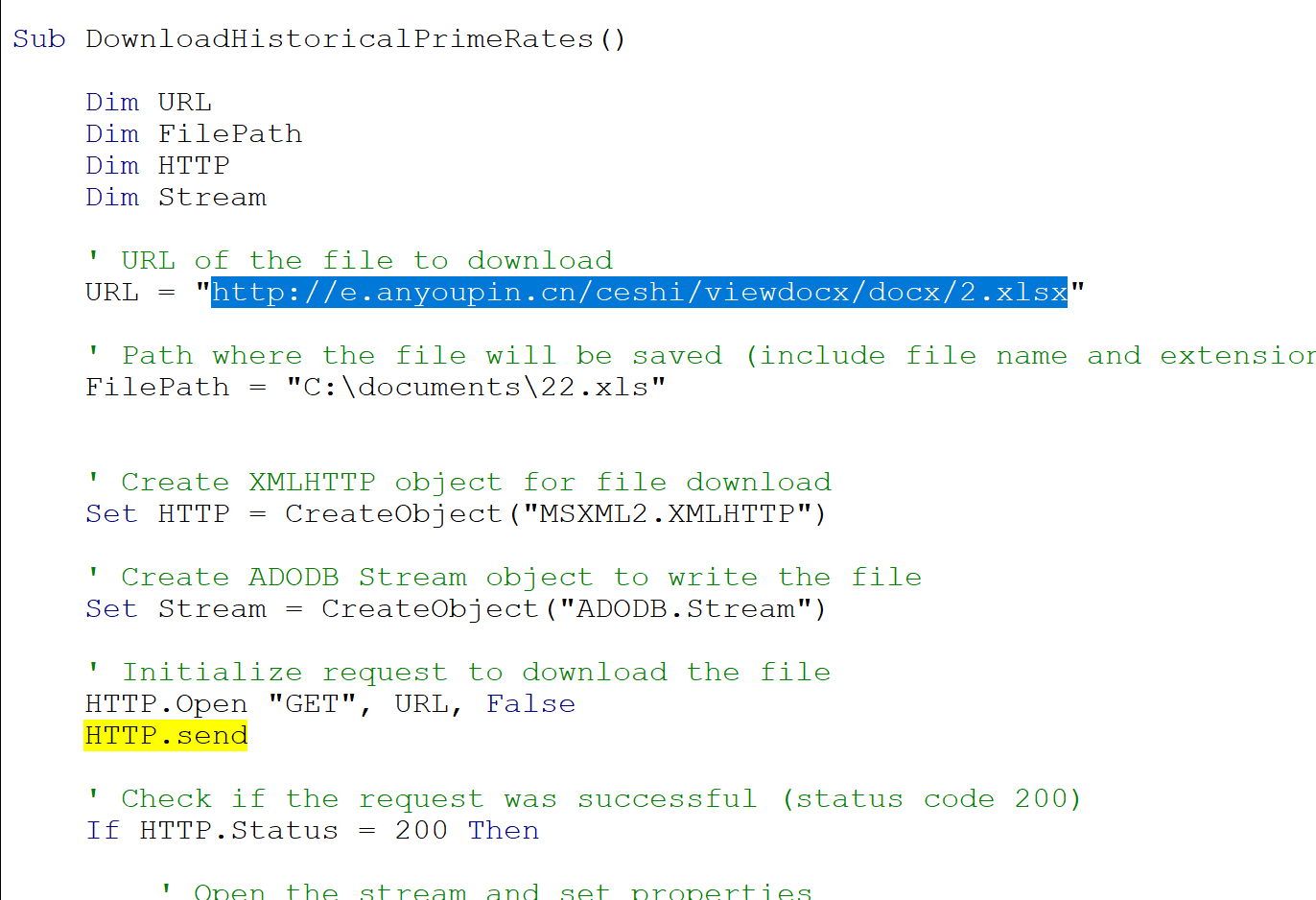 MsgBox "Failed to download the file. HTTP Status: " & HTTP.Status