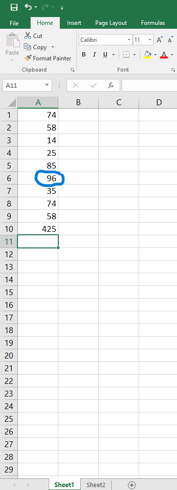 I am trying to create a formula to search for one cell (for example, in 1st picture 96) anywhere in another sheet (2nd picture). I would like to then apply this formula to all the cells in one column. For example, in sheet1 cell 6, search all of sheet2 column A and if 96 exists in sheet2 then return true or format yellow, etc. Then I would like to do the same formula to for each cell in sheet1: does this cell value exist in sheet2, if so highlight yellow.Using excel 2016, I've tried vlookup but cannot get it to work. Thank you.