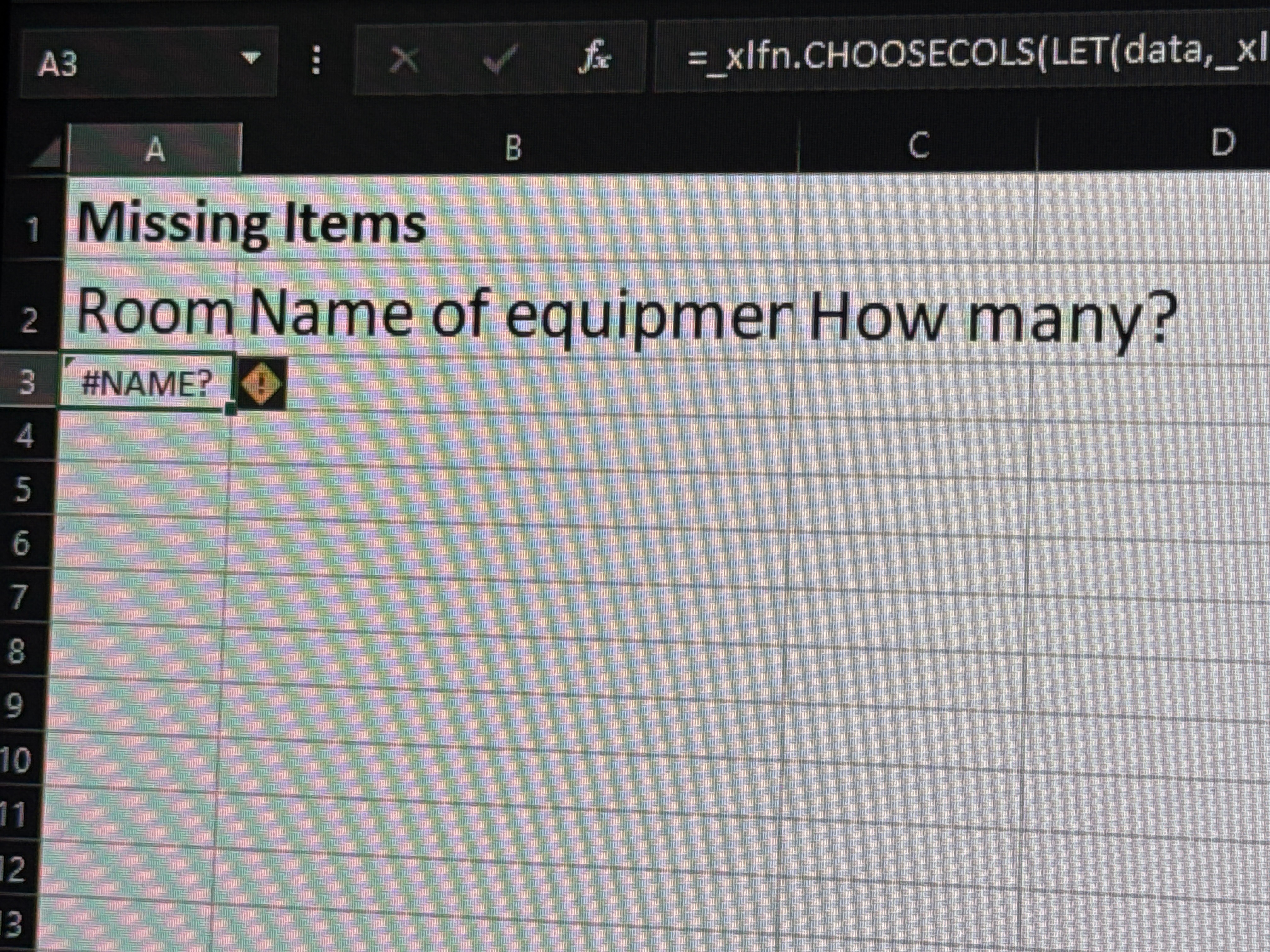 Hi all, would someone be able to help me with an excel someone has developed for me I am getting a #name error