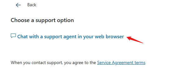 7. You can now select the option to chat with a support specialist on your web browser.