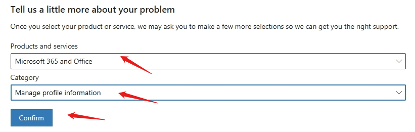 4. Go to the Products and Services tab and select the Microsoft 365 and Office category or Other Products.
