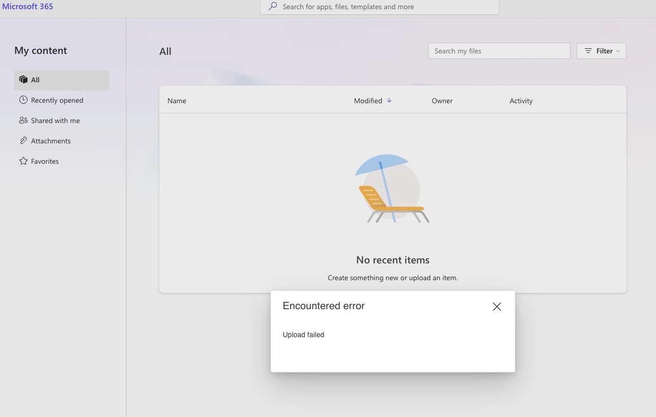May I ask if you are using the same Microsoft account for the issue in both threads? If so, then it is the OneDrive freeze that is causing your Office file uploads to fail.