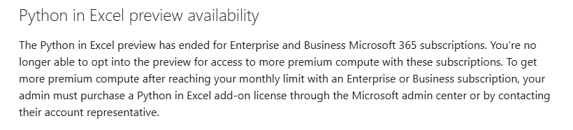 CoPilot suggests I just go to M365 admin, Purchase Services and search for Python in Excel add-on.