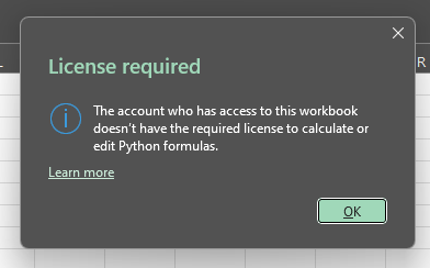 It seemms preview version is ended. You may need a Python in Excel add-on license to use Python formula.